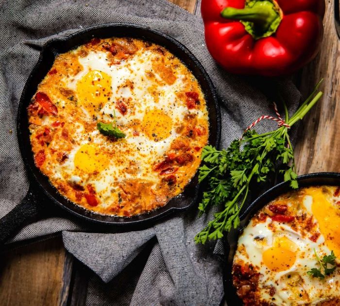 Op mijn blog staan ook nog een aantal recepten met ei, zoals deze keto broodjes, en de bakrecepten carrotcake en bananencake. En natuurlijk hieronder, de heerlijke midden-oosterse Shakshuka. Dit is een gerecht van gepocheerde eieren in een saus van groenten en kruiden.