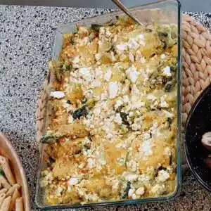 Dat gaat ongeveer zo: hmm… ik heb hier de mooie seizoensproducten prei en courgette, wat zullen we hier eens van maken?! Het werdt een frisse lasagne die helemaal is afgestemd op het zomer seizoen door de toevoeging van appel en citroen lekker fris!