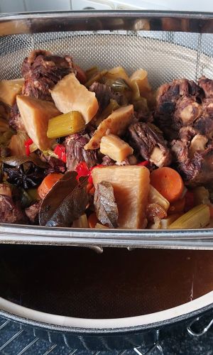 - Verwarm wat milde olijf- of kokosolie in een pan en laat de gember en knoflook even kort fruiten