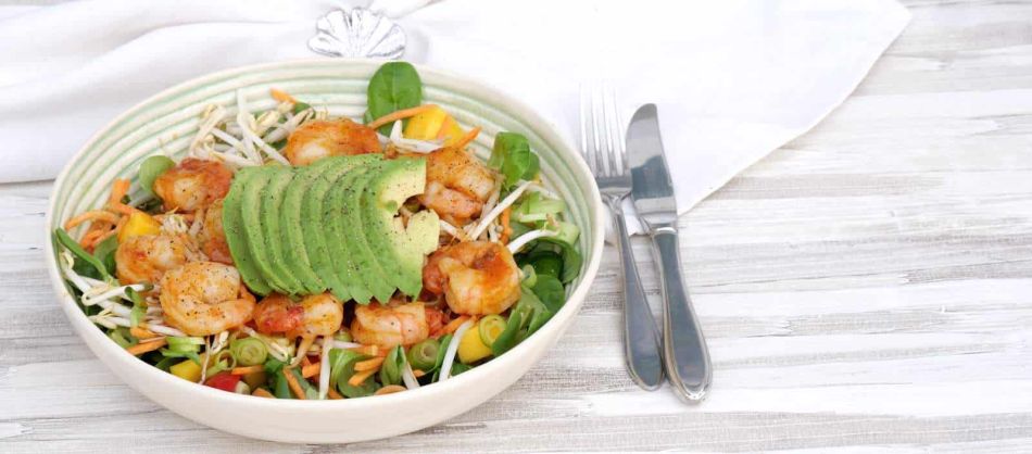 Een gemiddelde garnaal levert per 100 gram zo’n 91 kcal, 18,5 gram aan eiwitten, 0 gram aan koolhydraten en 1,9 gram aan vet waarvan 0,5 gram verzadigd vet. Het is dus ook een enorm goede bron van eiwitten. Zoals je ziet bevatten garnalen ontzettend veel gezonde stoffen. En ik zeg nou garnalen, maar wist je dat we garnalen en gamba’s heel vaak door de war halen? Ze zijn sterk verwant aan elkaar maar hebben wel wat verschillen: ze zijn o.a. anders van structuur en hebben andere kieuwen. Probeer deze zomerse salade met een Aziatisch tintje er eens mee te maken!